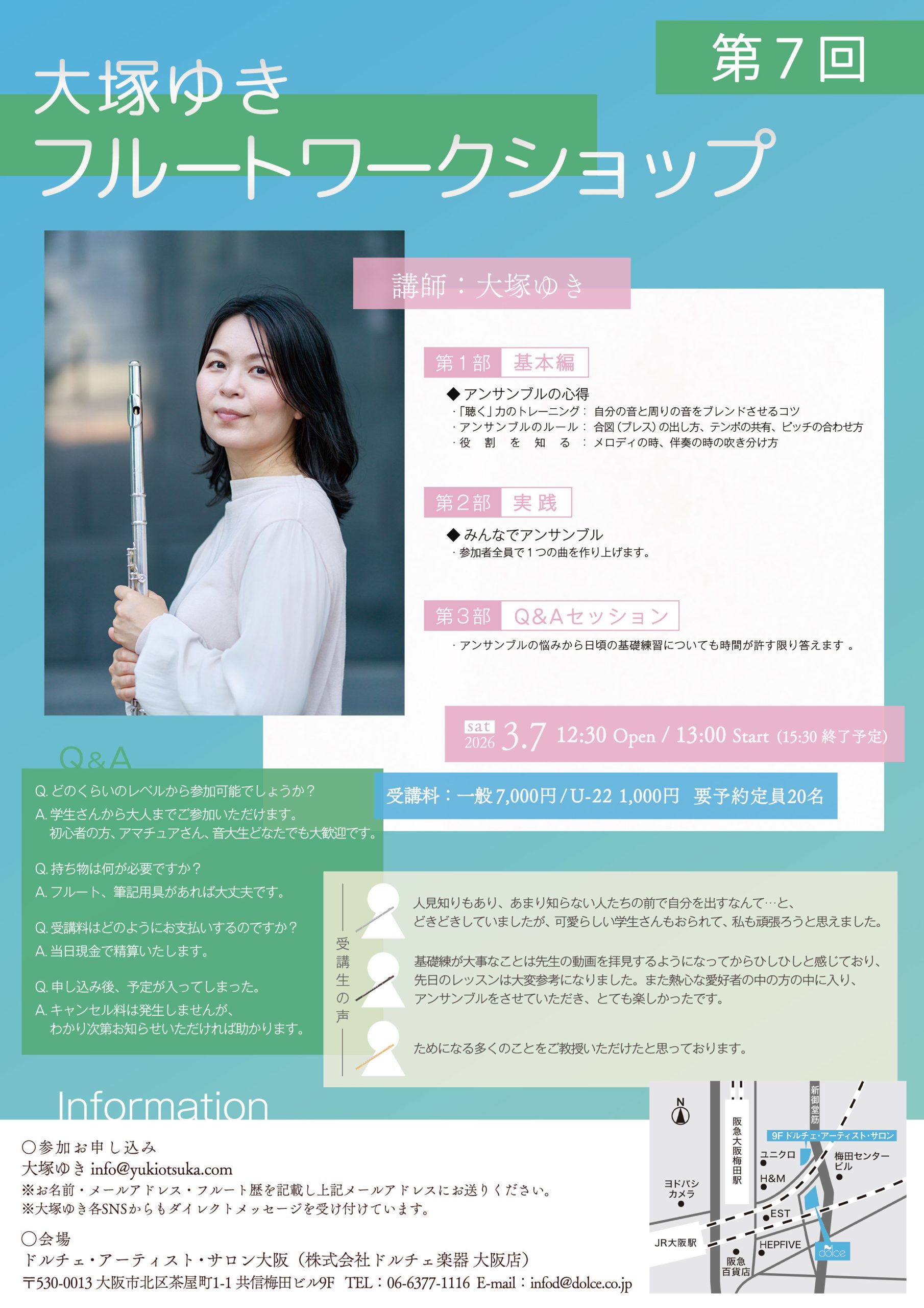 【申込受付中】第7回 大塚ゆきフルートワークショップ